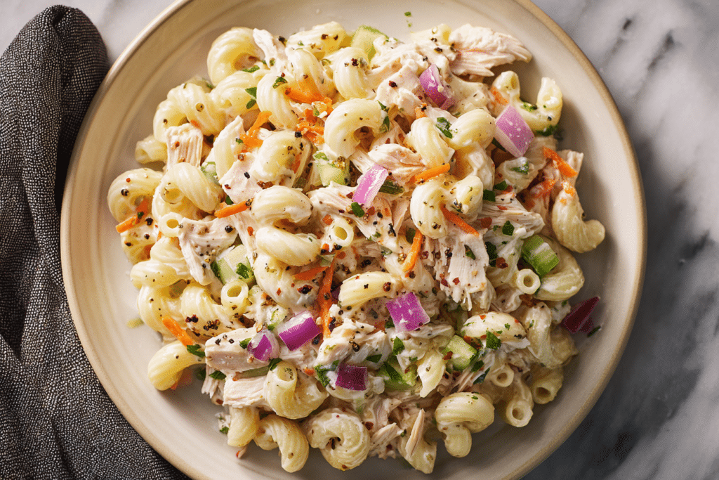 This Chicken Macaroni Salad is a satisfying, protein-packed twist on classic macaroni salad. It combines tender pasta, juicy chicken, crunchy veggies, and a creamy tangy dressing—making it perfect for meal …