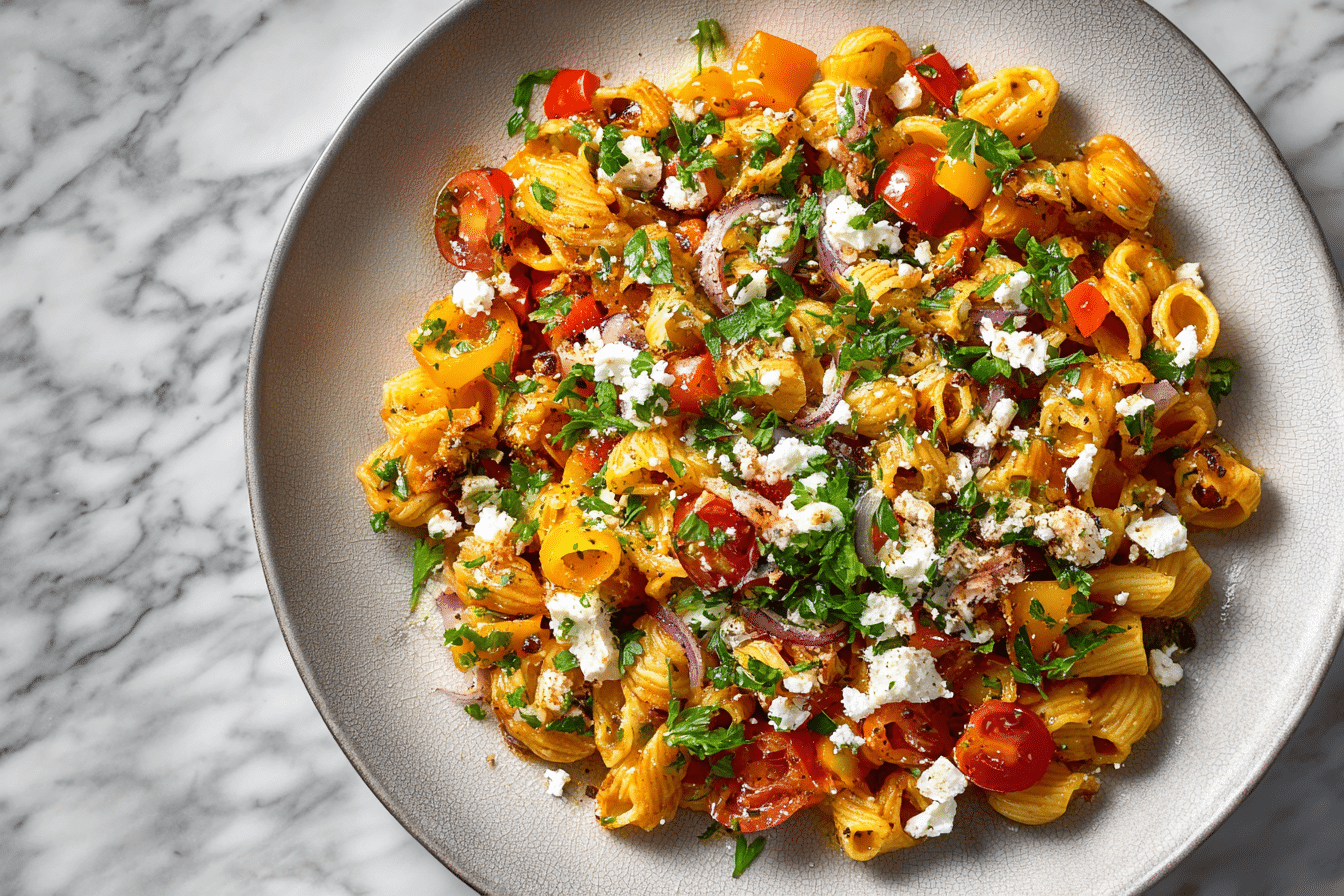 Dieser Crispy Pasta Salad mit Feta & Gemüse ist knusprig, frisch und voller Geschmack – ein echter Hingucker und garantiert ein Lieblingsrezept 🥗✨