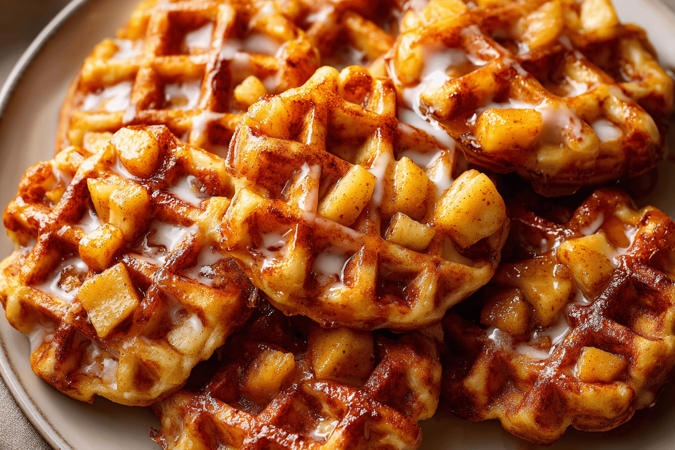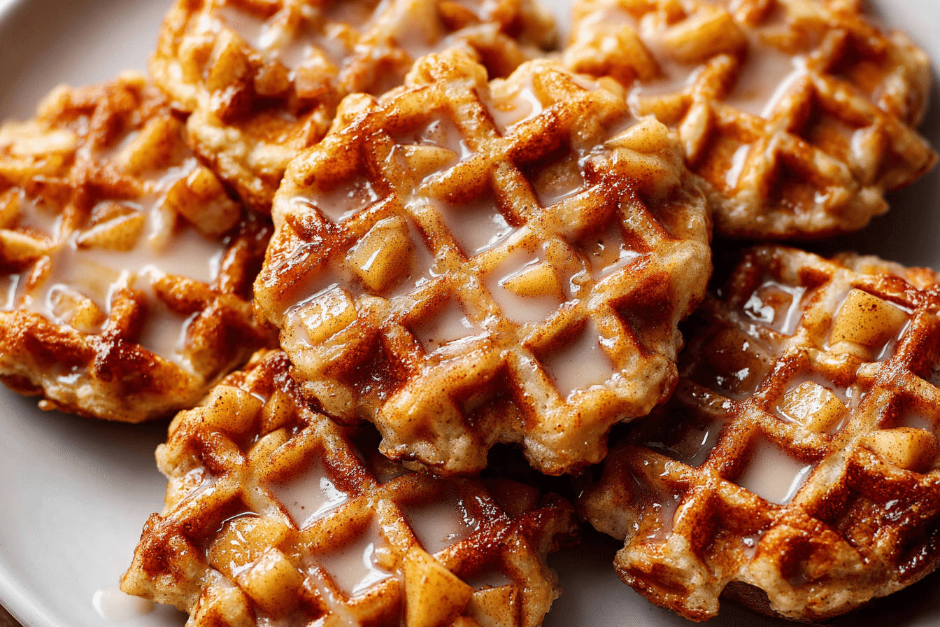 These waffle donuts combine the cozy flavors of spiced apples and vanilla glaze in a fun, handheld treat. No frying, no fuss — just warm, golden bites of apple fritter goodness made in a waffle maker.