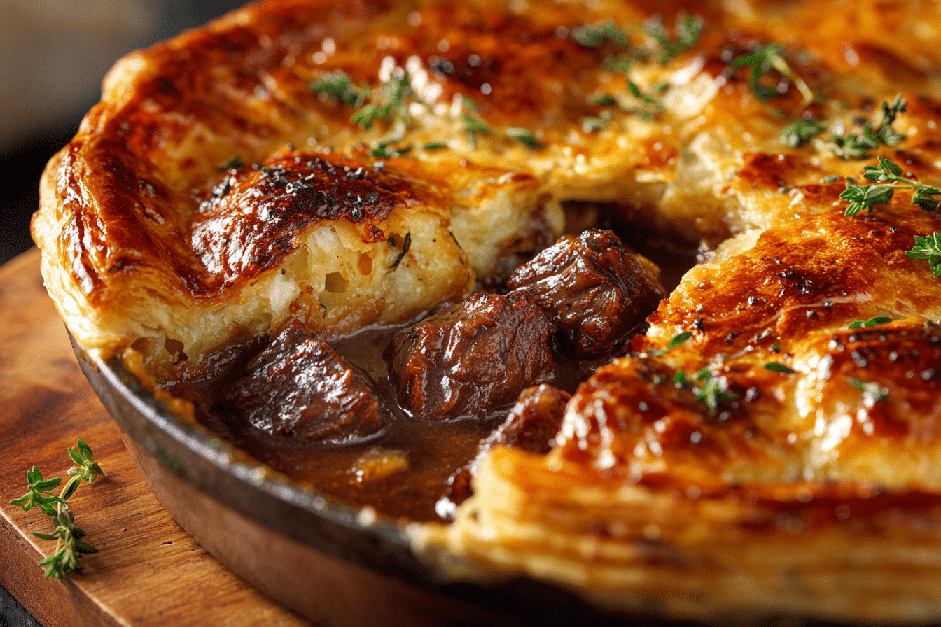 With melt-in-your-mouth beef, savory vegetables, and a buttery pastry topping, this pie is perfect for chilly evenings, family dinners, or festive celebrations like Saint Patrick’s Day.