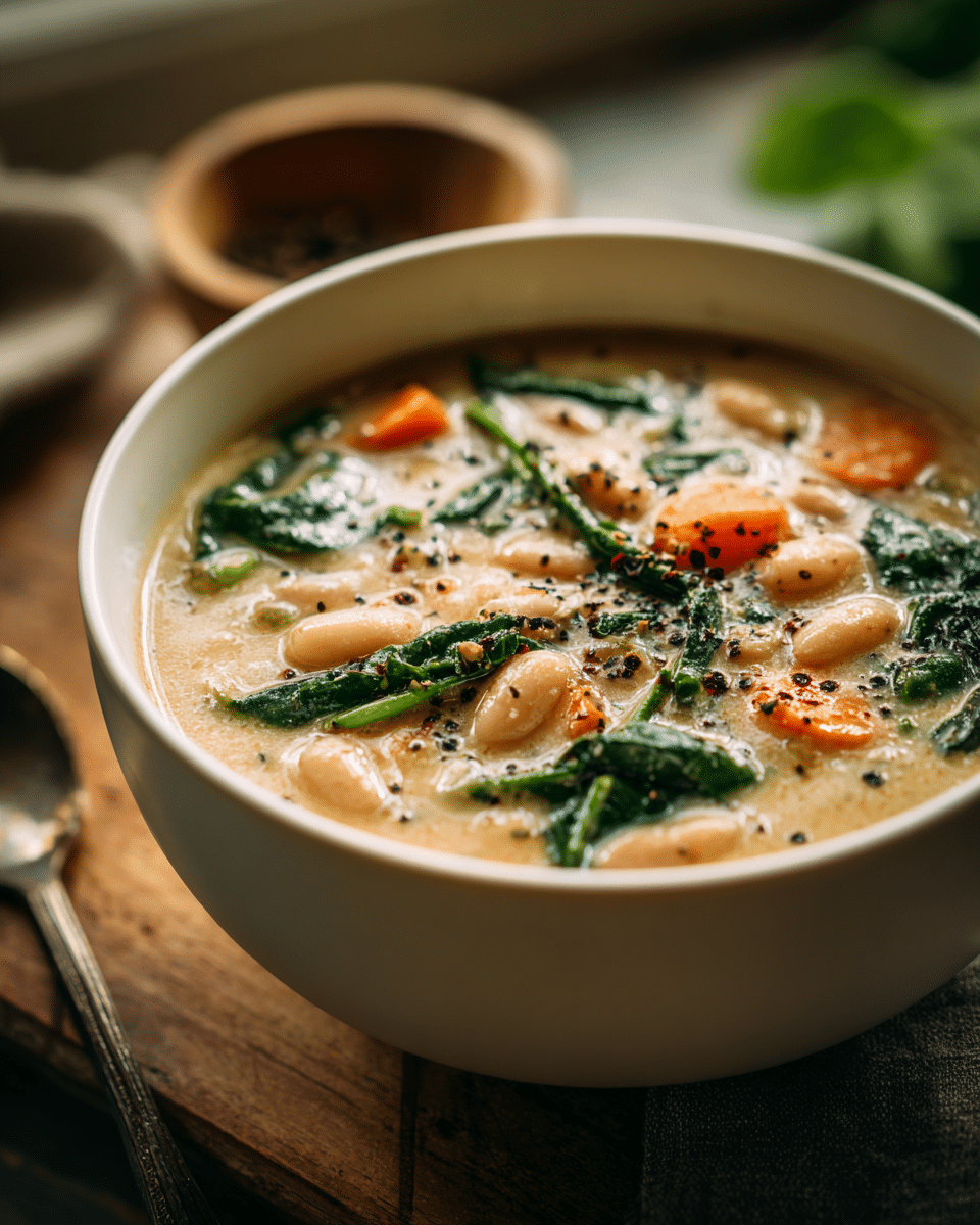 A creamy, rustic white bean soup made with simple ingredients like cannellini beans, herbs, garlic, and greens. Vegan, hearty, and perfect for cozy nights or healthy lunches.