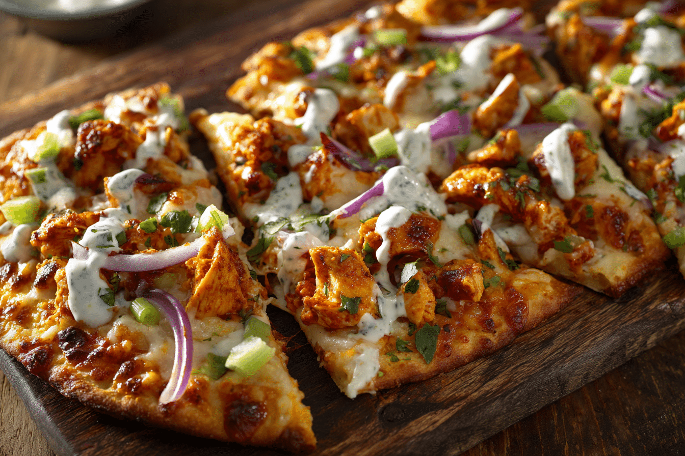 Buffalo Chicken Flatbread is a bold, flavorful, and easy-to-make dish that combines tender chicken tossed in zesty buffalo sauce with melty cheese, crisp flatbread, and optional fresh toppings. It’s a crowd-pleasing appetizer, lunch, or game-day favorite that delivers all the heat and flavor of classic buffalo chicken in a fun, portable format.