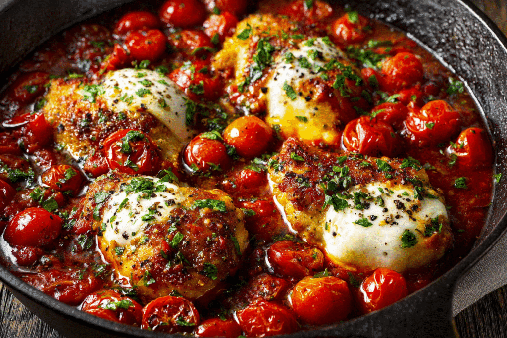 Garlic Tomato Chicken with Mozzarella is a classic one-pan dinner that brings together juicy chicken, tangy tomato sauce, and bubbling, golden mozzarella cheese. With roots in Mediterranean-style cooking, this dish …
