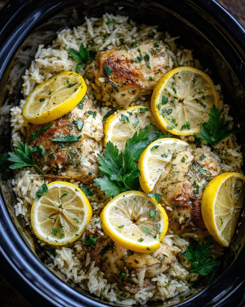 Slow Cooker Lemon Herb Chicken and Rice: Bright, Comforting & Hands-Free Dinner