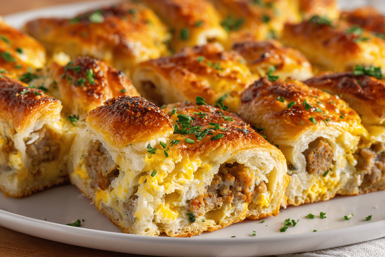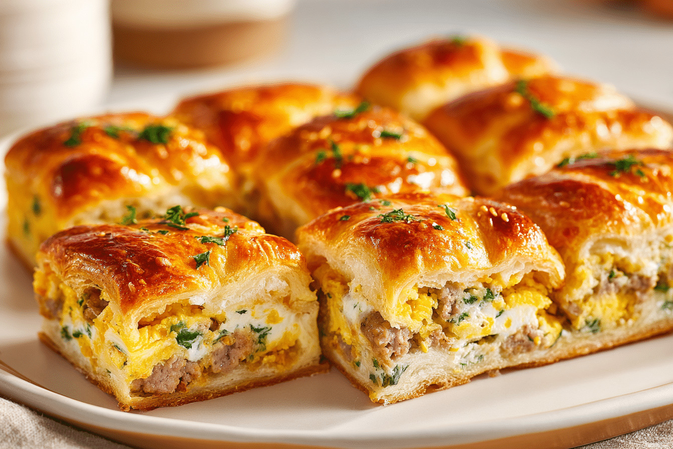 A hearty, satisfying breakfast bake made with chicken sausage, eggs, and cheese wrapped in flaky crescent dough—perfect for meal prep or feeding a crowd.