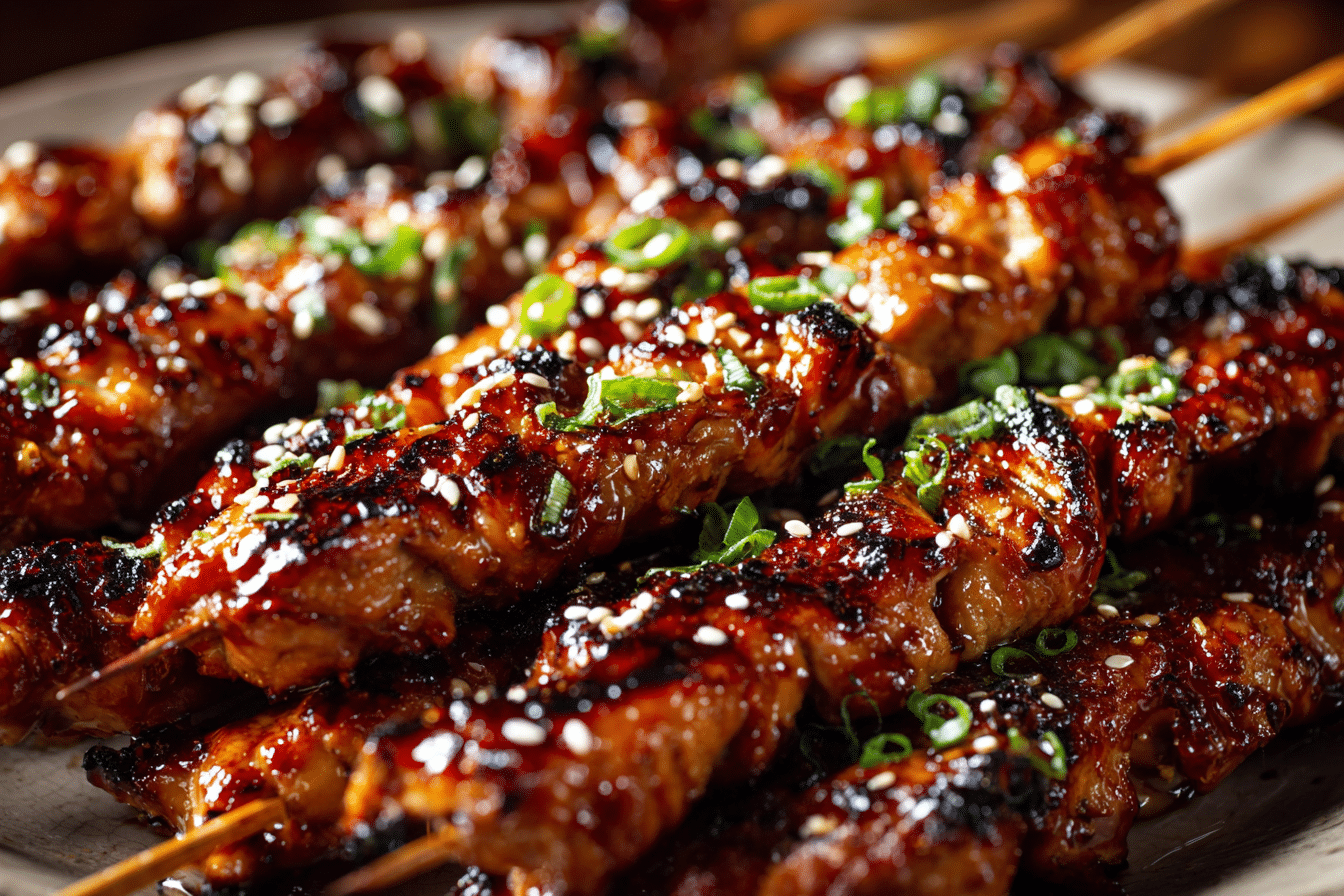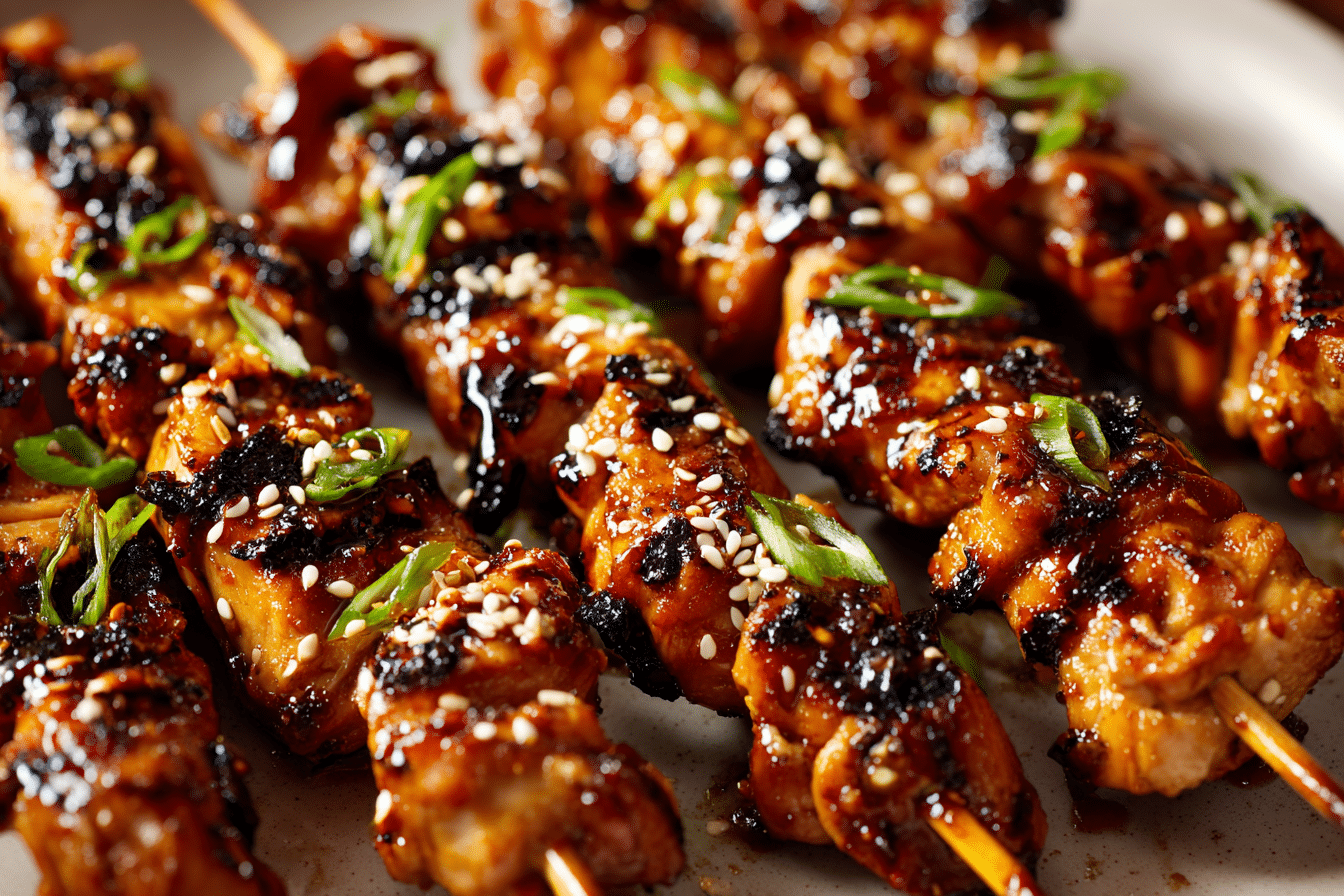 Chinese Chicken on a Stick is juicy, caramelized, and packed with sweet-and-savory flavor. Marinated in a rich soy-based glaze with garlic, ginger, and a touch of sweetness, these skewers are grilled (or baked) until perfectly charred and sticky.