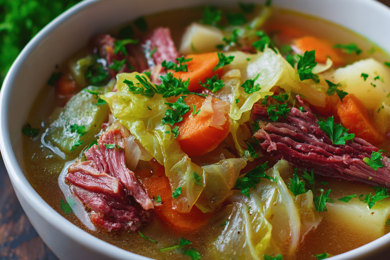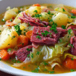 A hearty, comforting soup featuring tender corned beef, cabbage, potatoes, and carrots in a rich beef broth. Perfect for chilly nights, holiday leftovers, or make-ahead meals.