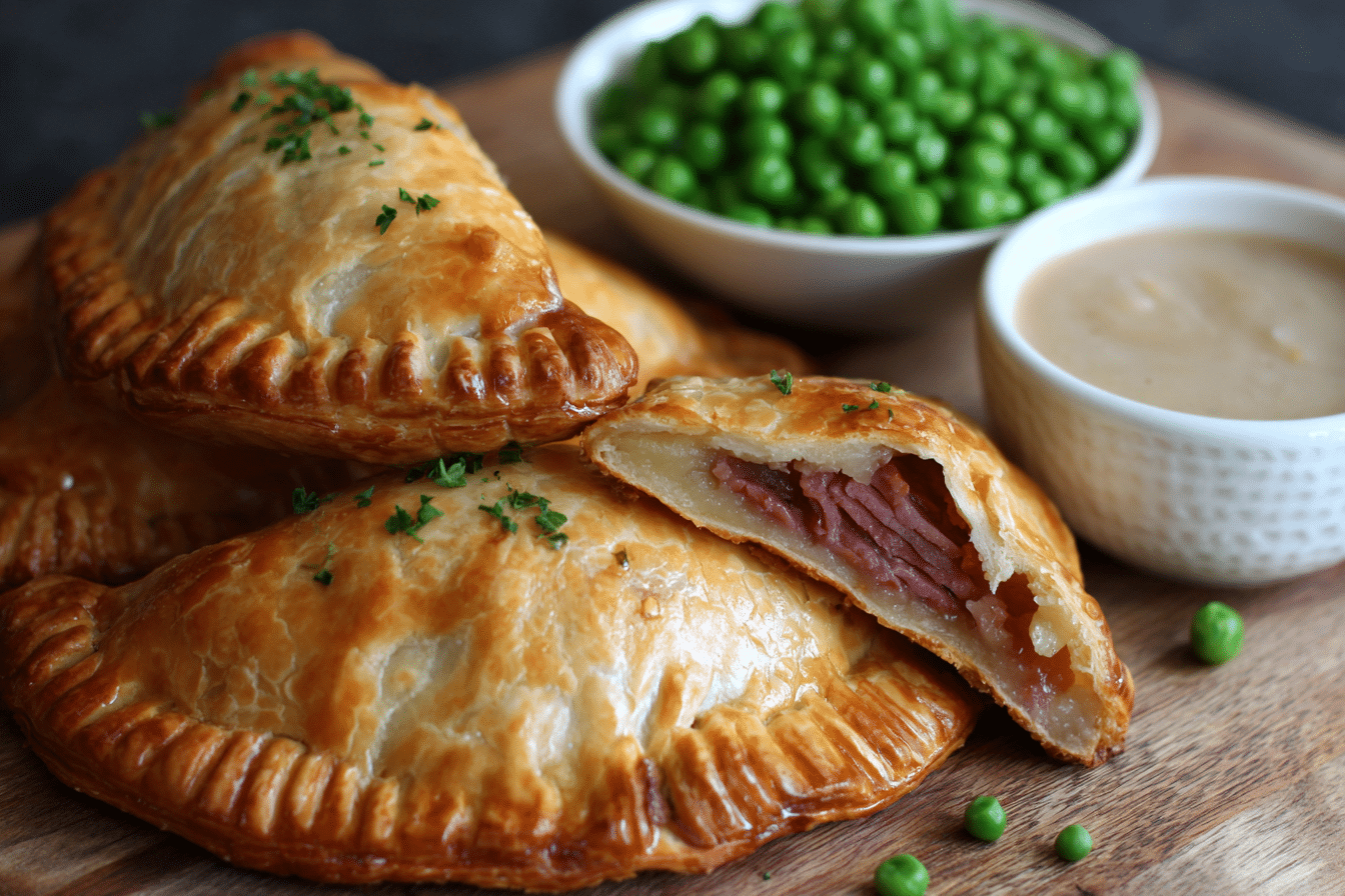 Savory handheld pies filled with seasoned corned beef, potatoes, and onion wrapped in golden shortcrust pastry. A cozy British-style classic perfect for any occasion