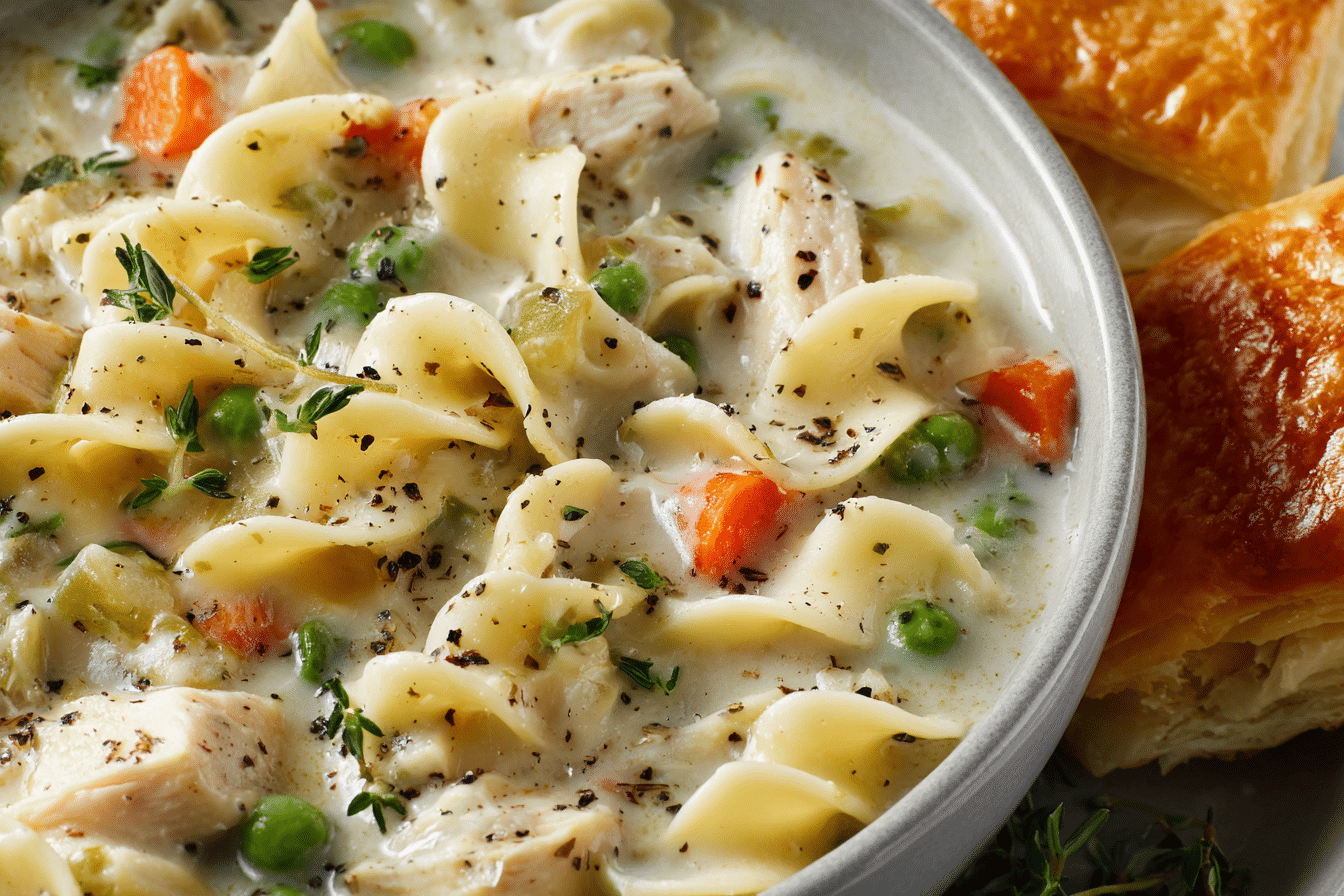 It’s more than just a cold-weather meal. It’s the kind of recipe you crave after a long day, when you need something warming, nourishing, and satisfying. Every bite is creamy and full of homestyle flavor, with tender chicken, sweet vegetables, and a silky broth that clings perfectly to soft noodles. It’s familiar, cozy, and unfailingly delicious.