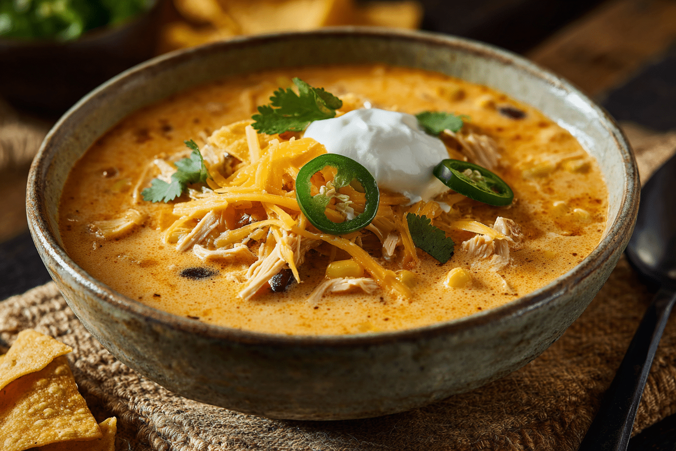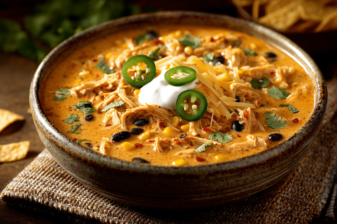 A creamy, savory soup inspired by classic chicken enchiladas. Packed with shredded chicken, black beans, corn, and Tex-Mex spices, it’s a hearty, one-pot meal perfect for cozy dinners.