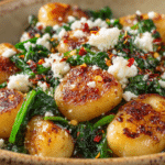 Creamy Gnocchi with Spinach and Feta is the kind of comforting skillet meal that feels both simple and satisfying. Soft, pillowy gnocchi simmer gently in a rich cream sauce while fresh spinach wilts into tender ribbons. Crumbled feta melts slightly, creating tangy pockets that contrast beautifully with the velvety base.