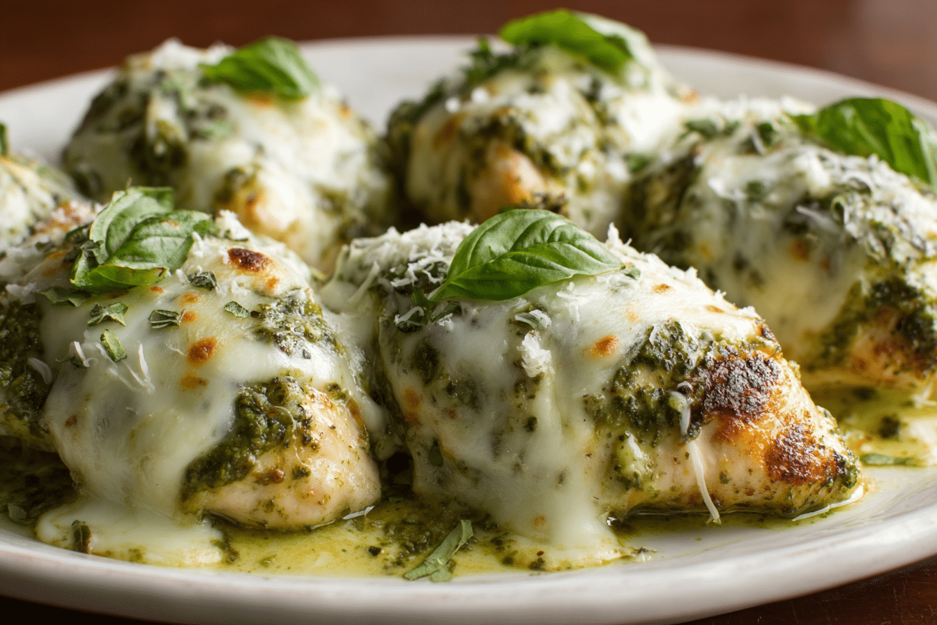 Creamy Pesto Mozzarella Chicken Bake – A One-Pan Meal That’s Bold, Cheesy, and Satisfying