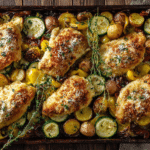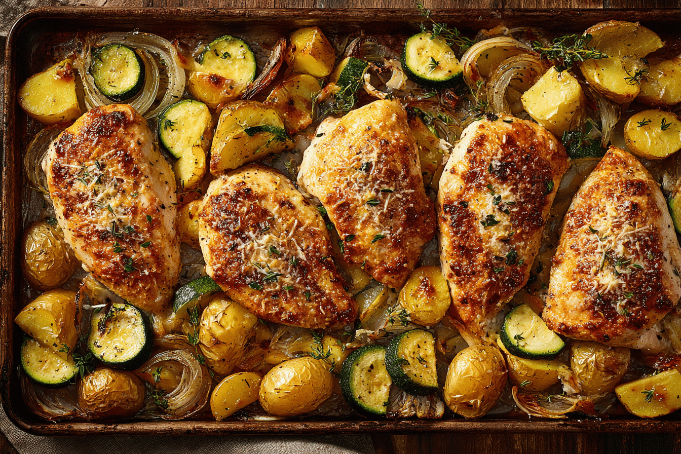 There’s something undeniably satisfying about a one-pan dinner that’s both convenient and crave-worthy—and this Crispy Parmesan Crust Chicken Sheet Pan Dinner is exactly that. Tender chicken breasts are coated in a flavorful, golden Parmesan crust and roasted alongside seasoned vegetables until everything is crisp, juicy, and ready to serve in just 45 minutes.