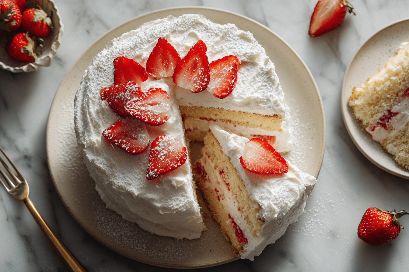 This Strawberry Cream Cake is soft, airy, and loaded with fresh strawberries and whipped cream, making it perfect for birthdays, tea parties, or any special occasion. Its delicate look and flavor make it the cutest cake you’ll ever serve!