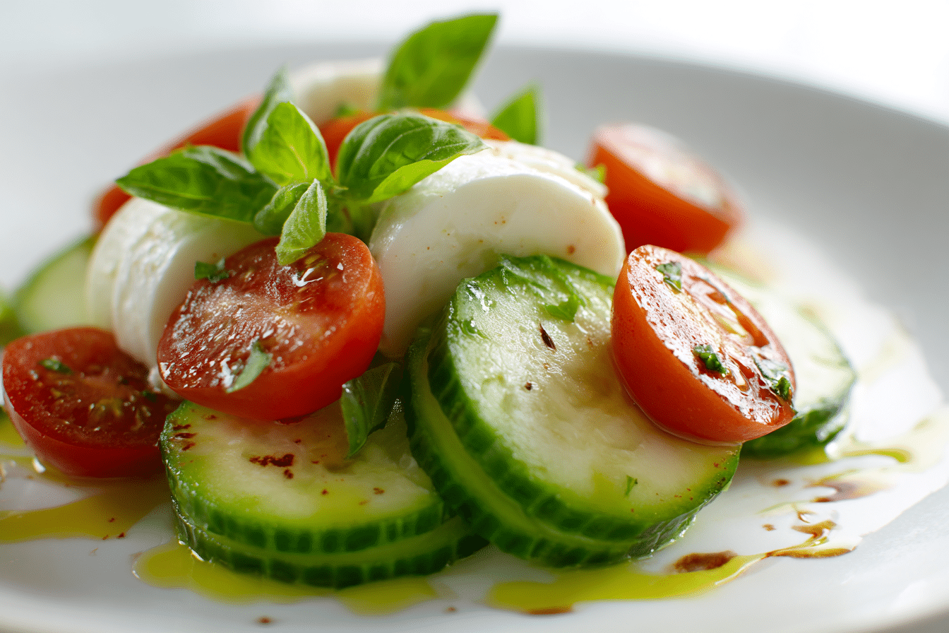 Easy Cucumber Caprese Salad is a bright, crisp, and effortless dish that highlights the beauty of simple ingredients. With minimal prep and maximum flavor, it’s a reliable go-to for warm days, casual dinners, and special gatherings alike.