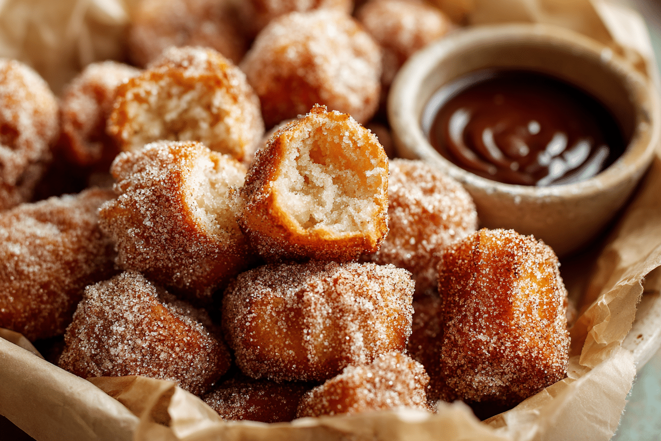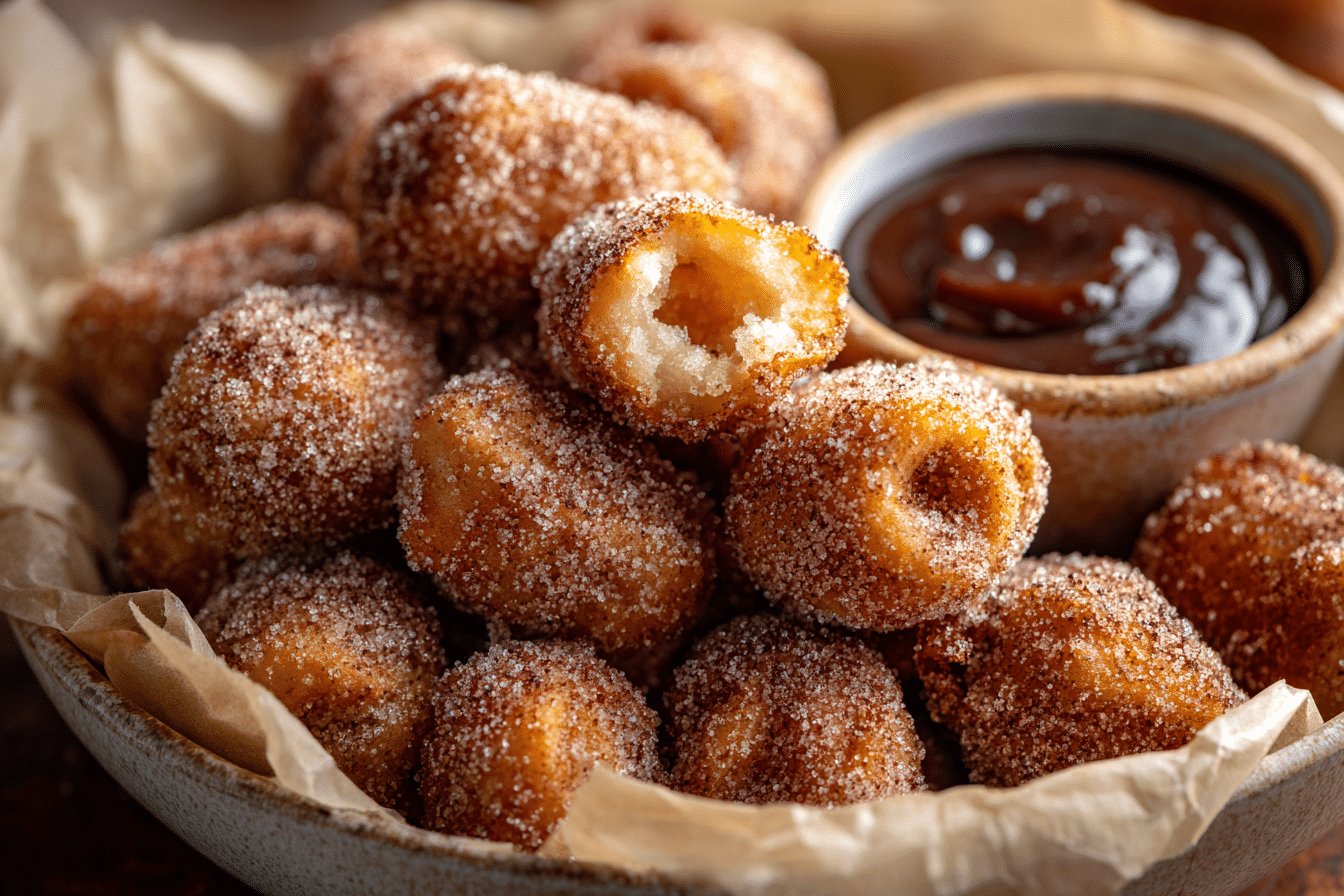 Optional Dips – Chocolate sauce, caramel, or dulce de leche elevate these churro bites into a decadent dessert.