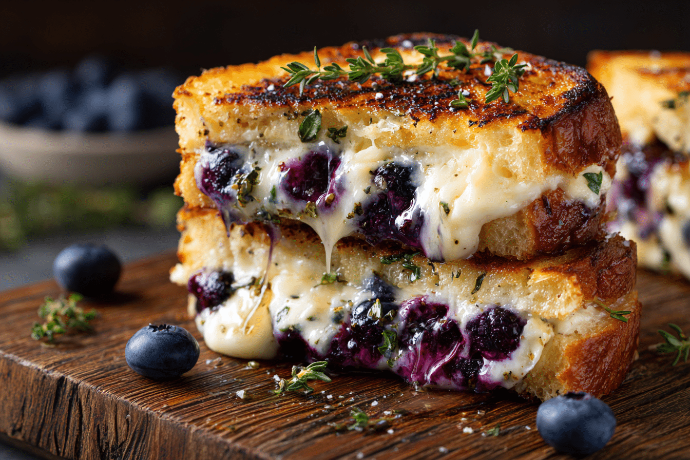 Gourmet Blueberry Grilled Cheese is an elevated twist on a classic comfort food. Juicy, fresh blueberries, creamy cheese, and perfectly toasted bread come together for a sandwich that’s sweet, savory, and irresistibly indulgent.