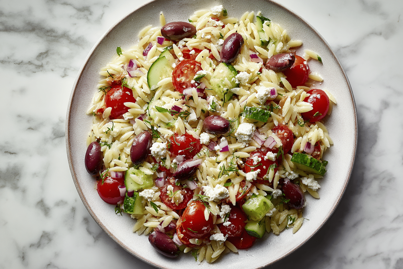 This Greek Orzo Pasta Salad is fresh, tangy, and full of Mediterranean flavor, making it a simple yet elegant dish for any occasion 🥗🇬🇷✨
