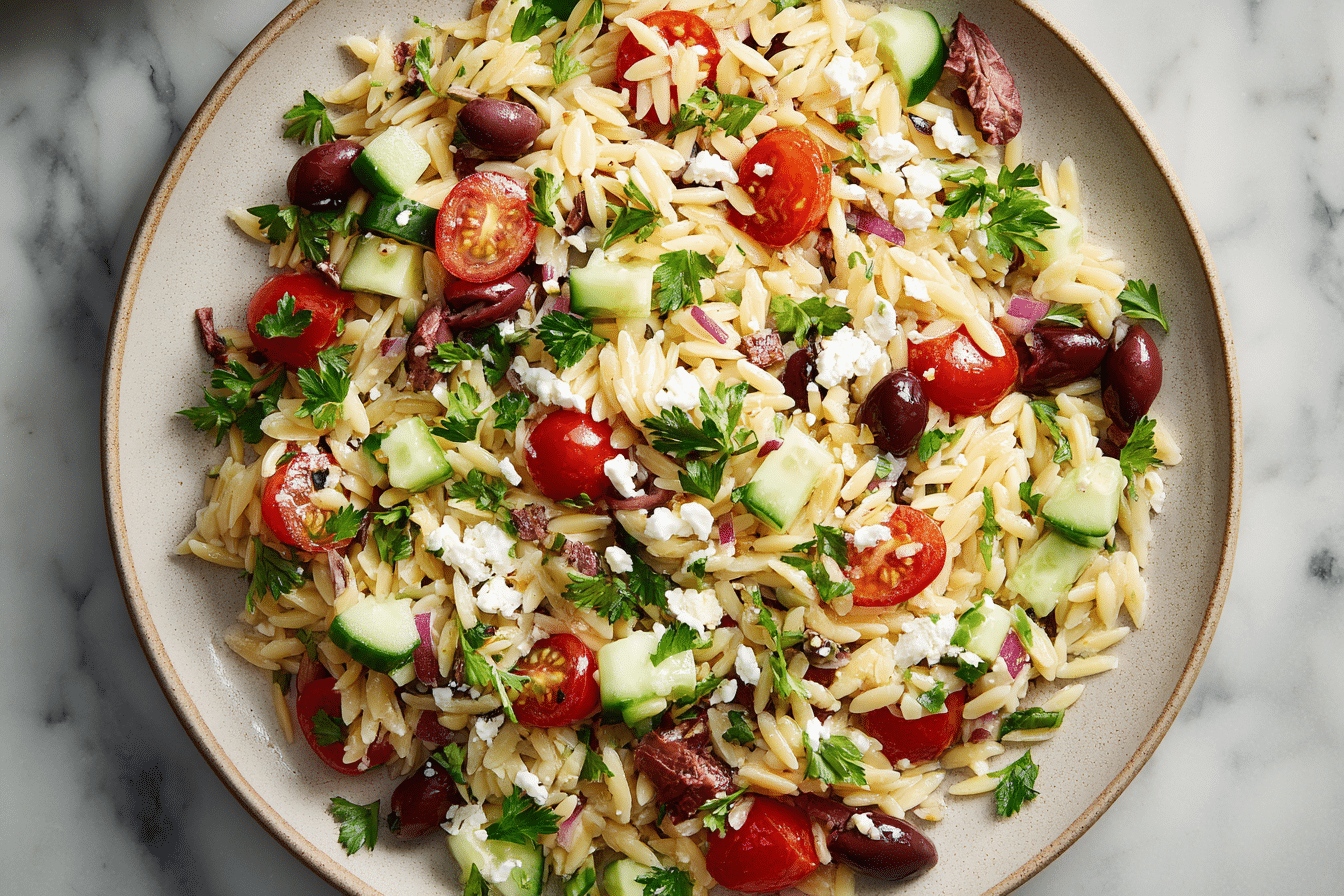 This Greek Orzo Pasta Salad is a bright, refreshing dish packed with tender orzo pasta, crisp vegetables, briny olives, and creamy feta cheese, all tossed in a zesty lemon-olive oil dressing. It’s perfect for meal prep, BBQs, or light lunches.