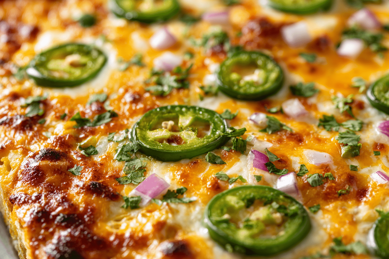 Salsa verde is the defining ingredient. Choose a high-quality green salsa made from tomatillos, green chilies, onion, and cilantro. It provides tangy brightness and mild heat that carries throughout the casserole.