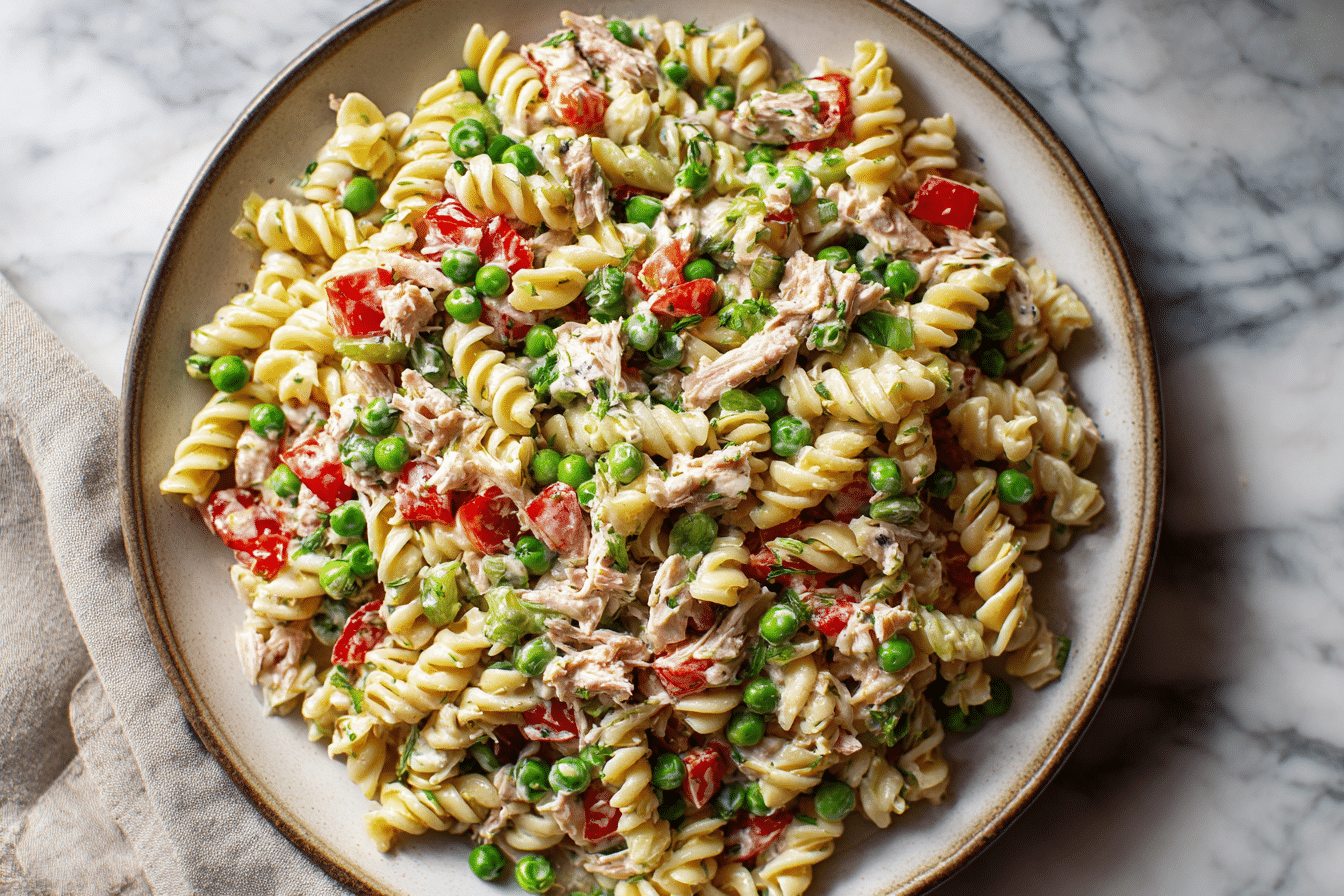 This Healthy Tuna Pasta Salad with Peas is fresh, creamy, and packed with protein, making it a smart and satisfying cold meal option 🥗🐟✨
