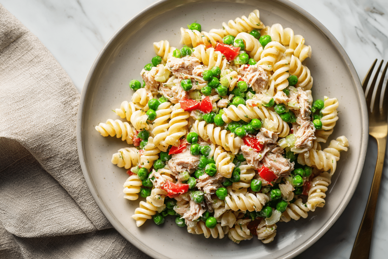 This Healthy Tuna Pasta Salad with Peas is a fresh, satisfying dish made with lean tuna, tender pasta, sweet peas, and a light creamy dressing. It’s perfect for meal prep, quick lunches, or a nutritious side.