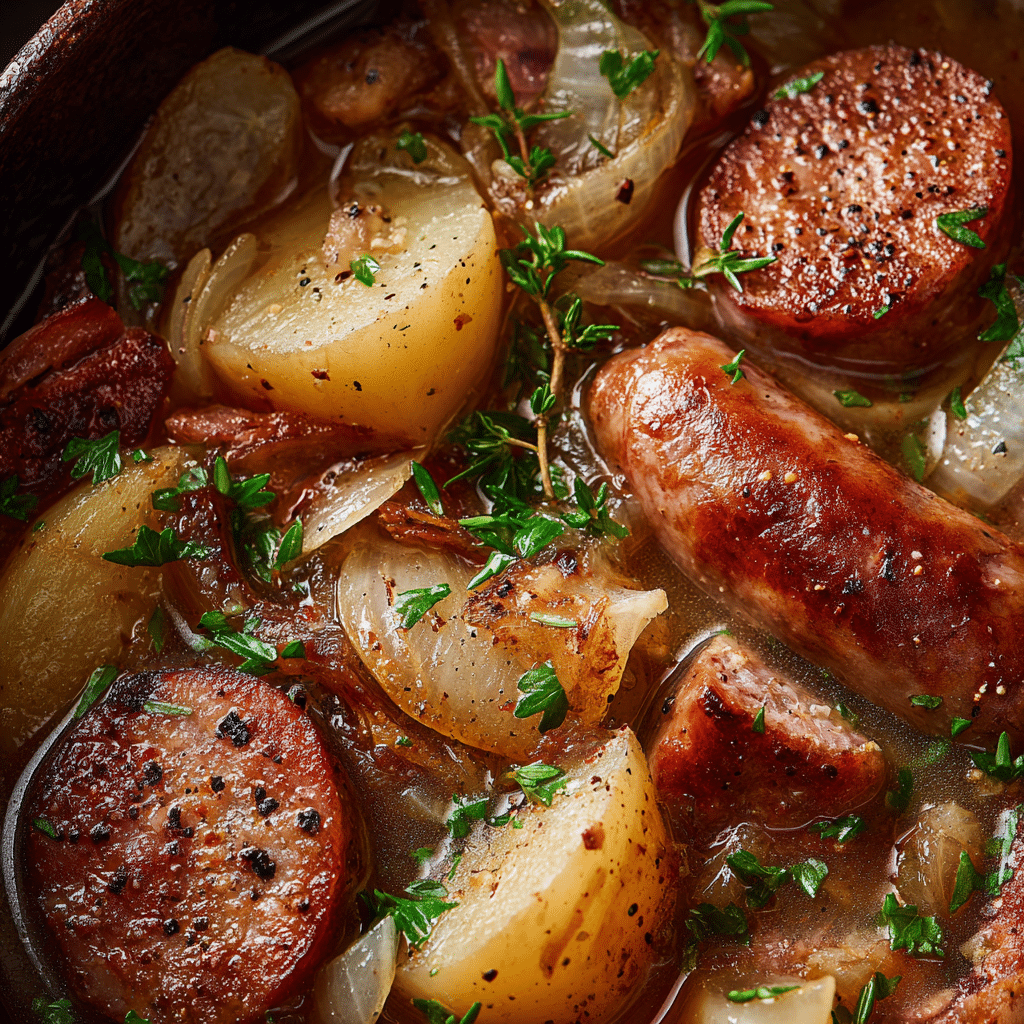 Hearty Dublin Coddle is a traditional Irish comfort dish made with sausages, bacon, onions, and potatoes slowly simmered together in a rich, savory broth. Originating in Dublin, this humble yet deeply satisfying stew has long been a staple of working-class Irish kitchens.