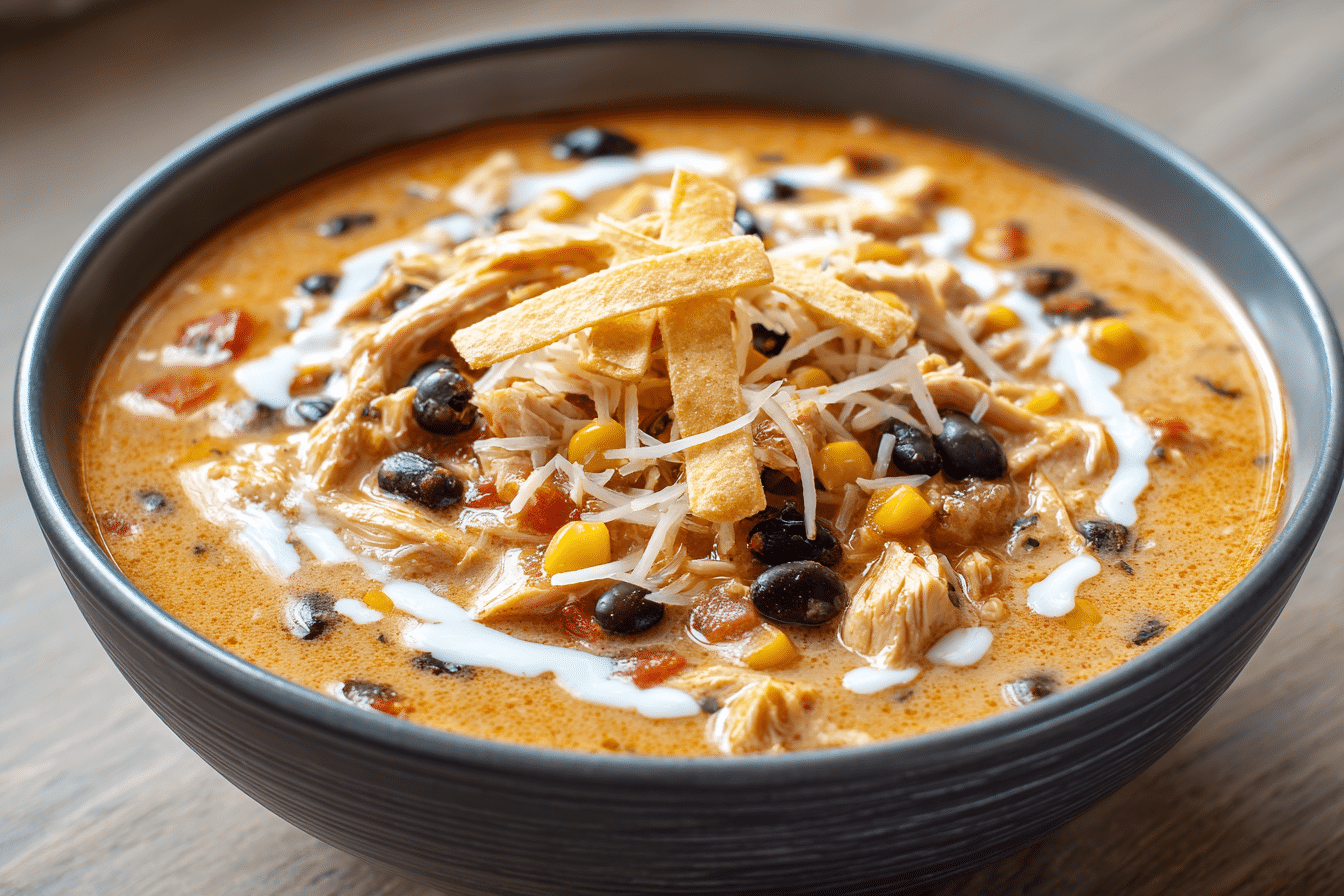 A comforting, protein-packed Tex-Mex chicken soup with beans, corn, and a creamy taco-spiced broth. Easy to make and full of bold flavor.
