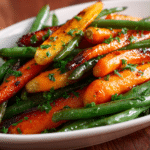 Honey Glazed Carrots & Green Beans is a vibrant side dish that transforms simple vegetables into a glossy, flavorful addition to any meal. Tender-crisp green beans and naturally sweet carrots are coated in a light honey glaze that highlights their freshness without overpowering their flavor.