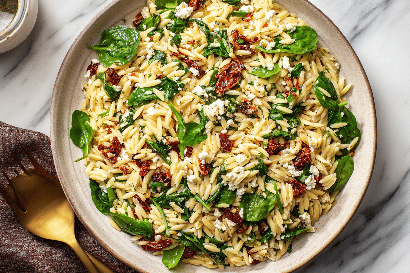This Orzo Pasta Salad with Feta and Sun-Dried Tomatoes is bright, savory, and packed with Mediterranean flavor. It features tender orzo, tangy feta, rich sun-dried tomatoes, and a zesty lemon dressing—perfect for meal prep, picnics, or a light yet satisfying side.
