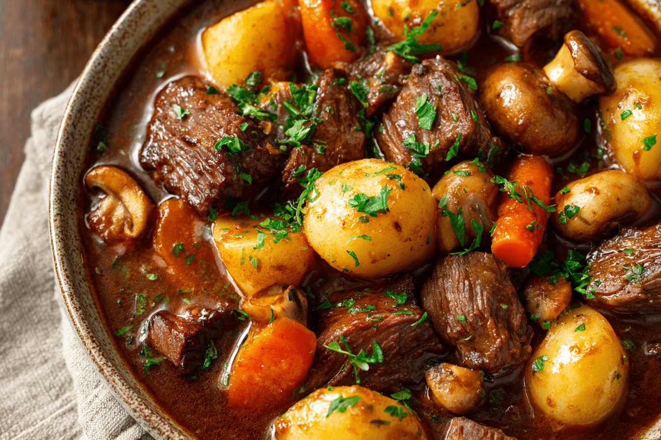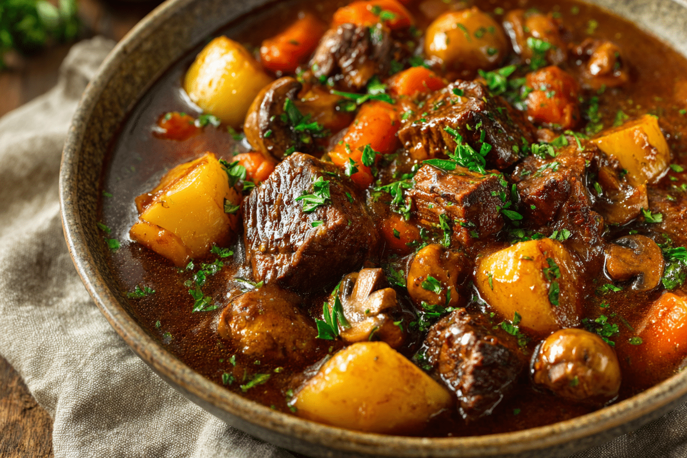 Slow cooker version: After browning the beef and sautéing the vegetables, transfer everything to a slow cooker. Cook on low for 7–8 hours or high for 4–5.
