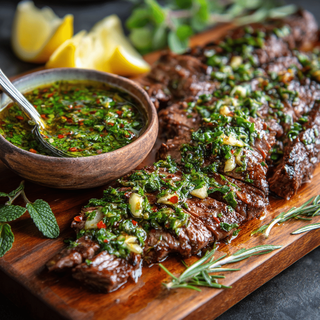 Inspired by the iconic Chimichurri from Argentina, this dish balances smoky grilled beef with fresh herbs and tangy vinegar.