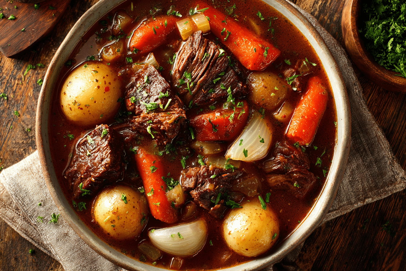 Originating from traditional English pot roasts and evolving through generations of home cooks across the world, this recipe brings simplicity and flavor together. The long, low heat of the slow cooker allows the beef to tenderize gradually, while herbs, garlic, and broth infuse every bite with deep, savory notes.