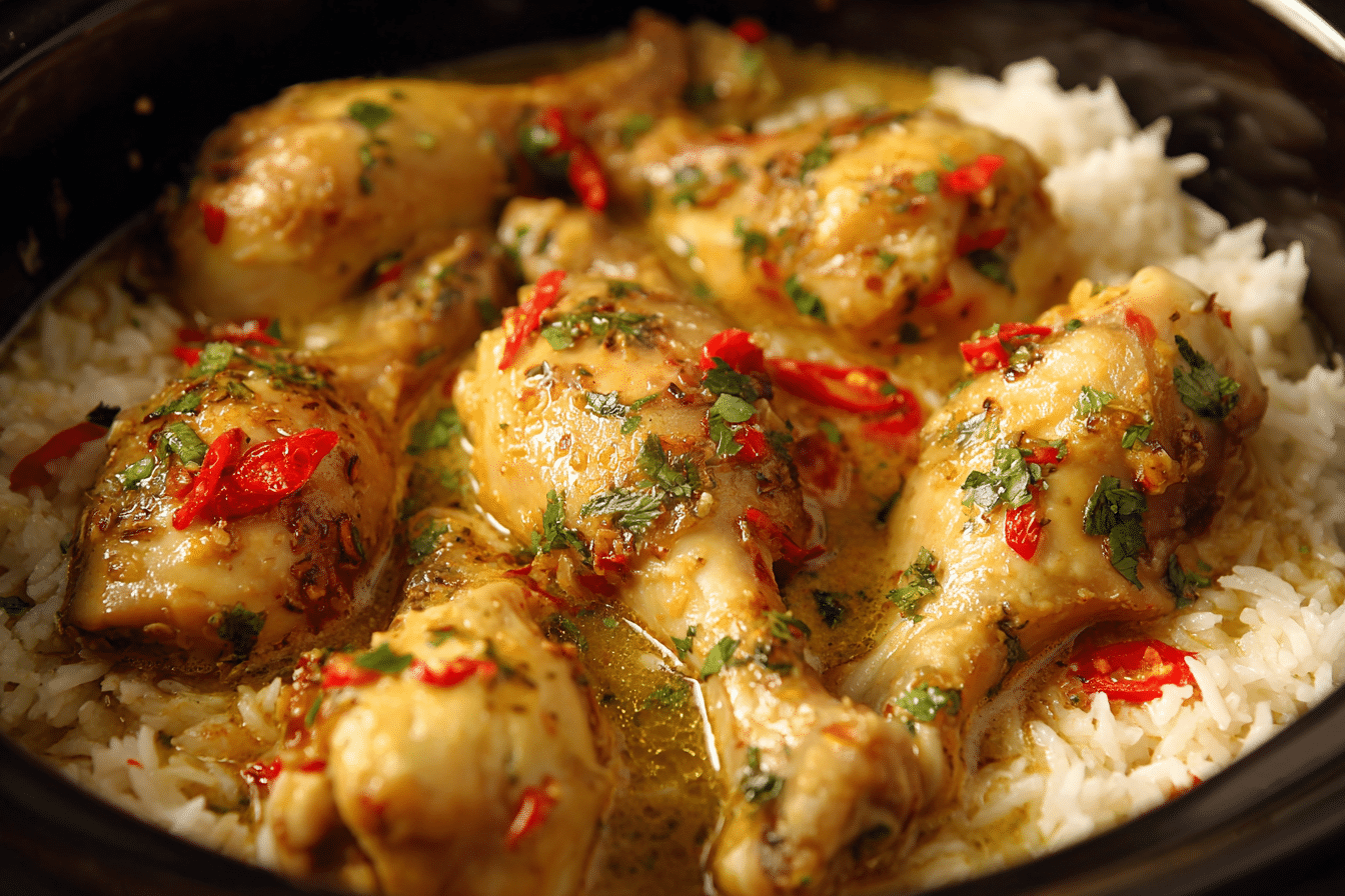 Tender, fall-off-the-bone chicken drumsticks slow-cooked in a spicy, creamy coconut curry sauce with hints of lime, garlic, and ginger. A bold yet comforting dish perfect for any night of the week.