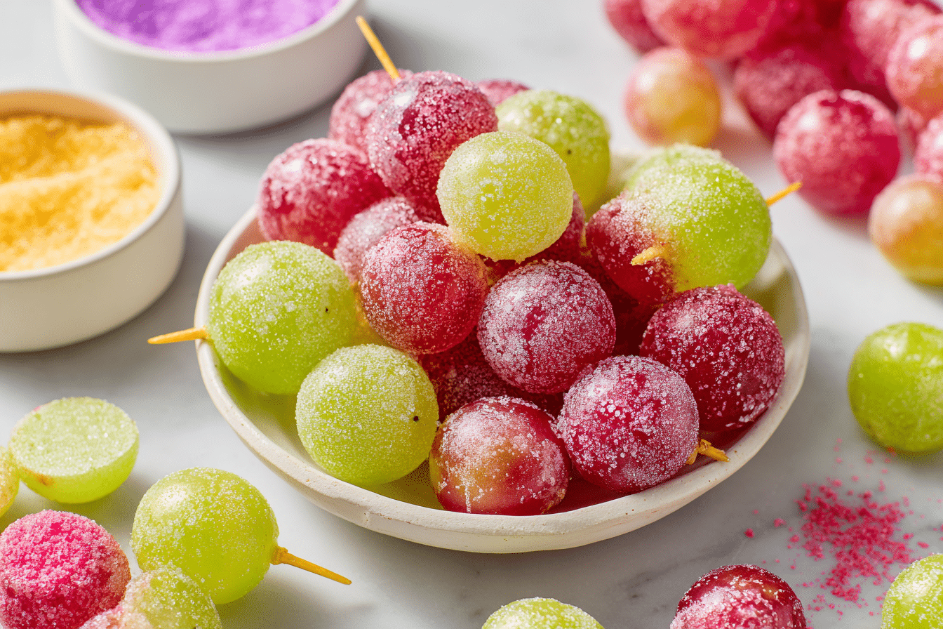 Sour Candy Frozen Grapes are the perfect balance of sweet, sour, and refreshing. With just a few ingredients and minimal effort, you can create a snack that tastes like candy but is made with real fruit.