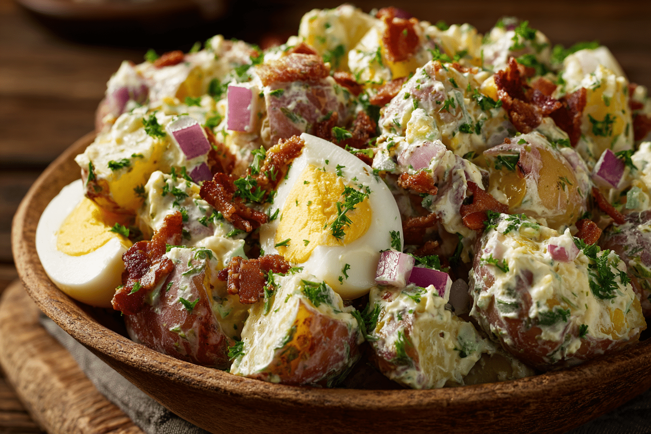 This potato salad’s creamy, tangy, and slightly smoky flavor makes it a classic crowd-pleaser every time.