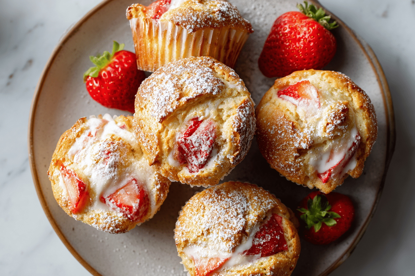 These Vegan & Gluten-Free Strawberries & Cream Dream Muffins are light, fruity, and irresistibly fluffy, making them a delicious treat for everyone, even non-vegans. 🍓✨