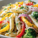 This recipe is adaptable, satisfying, and full of texture. Each forkful brings a balance of soft pasta, slightly crisp vegetables, and a smooth, glossy coating of sauce. Whether served as a weeknight dinner or a centerpiece for a casual gathering, Vegetarian Pasta Primavera offers comfort and brightness in every bite.