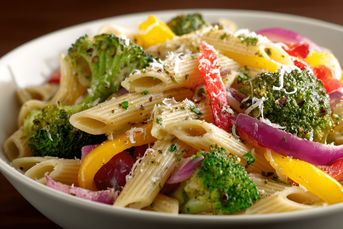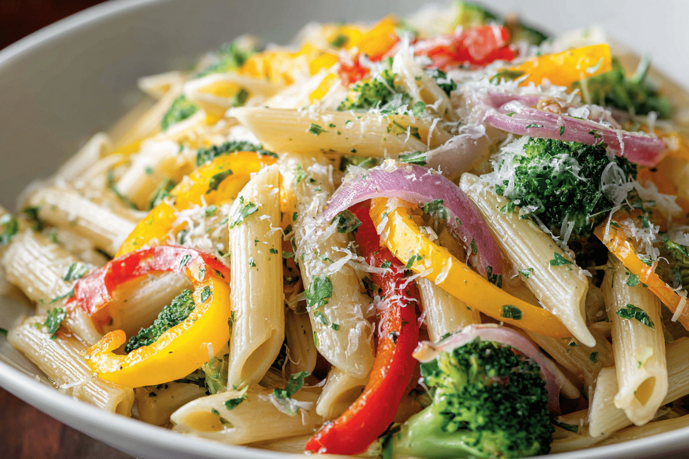 Vegetarian Pasta Primavera features tender pasta tossed with colorful seasonal vegetables, olive oil, garlic, lemon, and Parmesan for a light yet satisfying meal.
