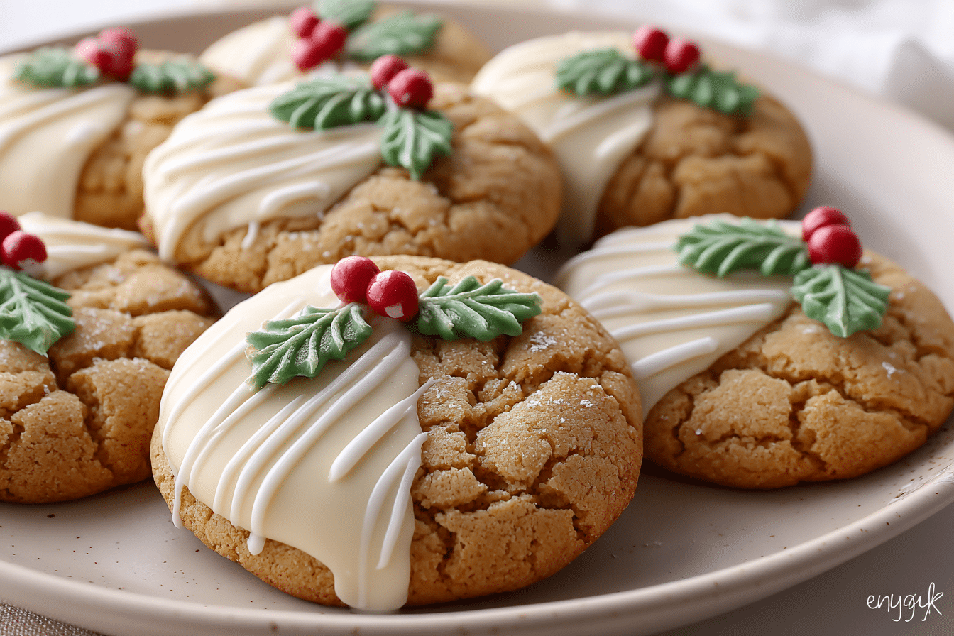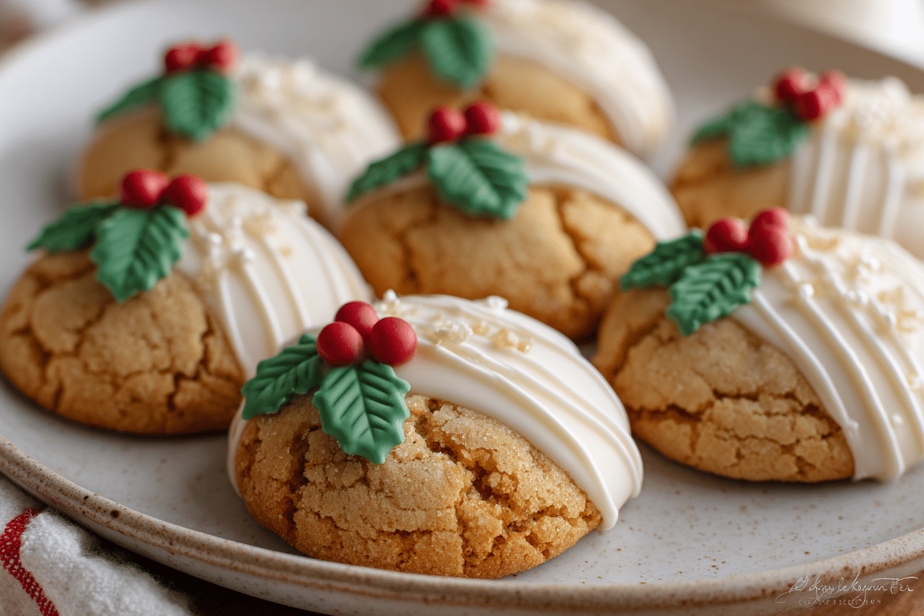 Use high-quality white chocolate (bars melt better than chips). Melt it gently and dip half the cooled cookies for a beautiful snowy finish. Optional: sprinkle with crushed peppermint or a dusting of cinnamon for a decorative touch.